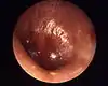 | A bulging tympanic membrane which is typical in a case of acute otitis media | |