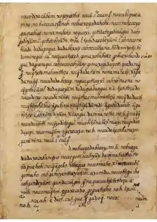 "Classical Otomi" is the term used to define the Otomi spoken in the early centuries of colonial rule. This historical stage of the language was given Latin orthography and documented by Spanish friars who learned it in order to proselytize among the Otomi. Text in Classical Otomi is not readily comprehensible, since the Spanish-speaking friars failed to differentiate the varied vowel and consonant phonemes used in Otomi.[5] Friars and monks from the Spanish mendicant orders such as the Franciscans wrote Otomi grammars, the earliest of which is that of Friar Pedro de Cárceres's Arte de la lengua othomí [sic], written perhaps as early as 1580, but not published until 1907.[12][13][14] In 1605, Alonso de Urbano wrote a trilingual Spanish-Nahuatl-Otomi dictionary, which also included a small set of grammatical notes about Otomi. The grammarian of Nahuatl, Horacio Carochi, is known to have written a grammar of Otomi, but no copies have survived. He is probably the author of an anonymous dictionary of Otomi (manuscript 1640). In the latter half of the eighteenth century, an anonymous Jesuit priest wrote the grammar Luces del Otomi (which is, strictly speaking, not a grammar but a report on research about Otomi [15]), and Neve y Molina wrote a dictionary and a grammar.[16] [17]