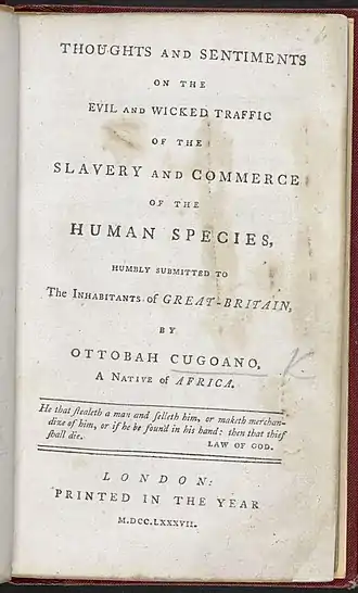 | Wikiquote has quotations related to: Ottobah Cugoano |
