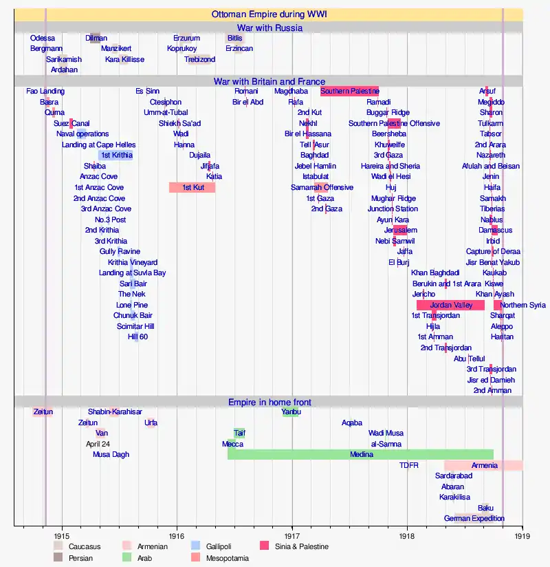 In July 1918, the Ottomans faced the Centrocaspian Dictatorship at the Battle of Baku, with the goal of taking Armenian/Russian/British occupied Baku on the Caspian Sea.