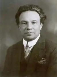 Respighi was schooled at Ginnasio Guinizelli in Bologna for two years from October 1890.[10] In 1891, he enrolled at the Liceo Musicale di Bologna, where he studied the violin and viola for the next seven years with his teacher, Federico Sarti.[11] Among Respighi's earliest completed and dated compositions at this time were Piccola Ouverture and Preludio for orchestra.[12] Four years into his course at the Liceo Musicale, Respighi began classes in musical composition with Giuseppe Martucci, the Liceo's director, and music history with Luigi Torchi. By the time he reached twenty, Respighi was performing in the orchestra at the Teatro Comunale di Bologna.[13] Martucci, a proponent of Bologna's musical life and composer of non-operatic Italian music, became an influential figure on the young Respighi.[14] In 1899, he received a diploma in the violin.[12] By this time, Respighi had developed a fondness for languages, demonstrated by his large collection, which contained atlases and dictionaries.[15] In his life Respighi became fluent in eleven languages and read literature in all of them.[16]