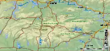 Ouachita National Forest is located in 13 counties in western and central Arkansas and 2 counties in southeastern Oklahoma. They are listed here in descending order of forestland within the county. Also given is their area as of September 30, 2007.[8] About 80% of the forest's area is in Arkansas, with the remaining 20% in Oklahoma. In Arkansas there are local ranger district offices located in Booneville, Danville, Glenwood, Jessieville, Mena, Mount Ida, Oden, Perryville, and Waldron. In Oklahoma they are located in Hodgen, Talihina, and north of Broken Bow. Even though the Ouachita National Forest is far from being the largest, its twelve ranger districts are the most of any in the National Forest system. The giant Tongass National Forest in Alaska is second with nine ranger district divisions.[9]