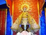 Our Lady of Peñafrancia (Spanish: Nuestra Señora de Peñafrancia in the Philippines, and Nuestra Señora de la Peña de Francia or Virgen de la Peña de Francia in Spain) is a wooden statue of the Blessed Virgin Mary venerated in Naga City, Bicol, Philippines. The image comes from the original image enshrined in Salamanca, Spain. It is currently housed at the Peñafrancia Basilica where every September is held for the novena festivities in honor of the image as the principal Patroness and Queen of Bicol.