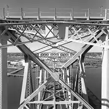 The bridge is of a steel cantilever construction, designed by John Alexander Low Waddell and built under the auspices of the Port of New York Authority, now the Port Authority of New York and New Jersey, which currently operates it.[5] It opened simultaneously with the first Goethals Bridge on June 29, 1928.[7] Both spans had similar designs prior to replacement of the Goethals with the current cable-stayed bridge in 2018. Neither bridge saw high traffic counts until the opening of the Verrazzano-Narrows Bridge in 1964. Traffic counts on both bridges were also depressed due to the effects of the Great Depression and World War II.