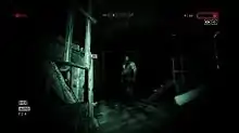 Most of the hospital is unlit, and the only way for the player to see while in the dark is through the lens of a camcorder equipped with night vision.[4] Using the night vision mode will slowly consume batteries, forcing the player to scavenge for additional batteries found throughout the asylum.[8] Outlast makes heavy use of traditional jump scares and audio cues, which alert the player if an enemy has seen them.[9] If the player records specific events with their camcorder, Miles will write a note about it, providing further insight into his thoughts. Documents can be collected, which offer backstory and other expository information about the facility, including pages taken from the diaries of patients and reports from the hospital staff.[8]