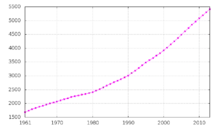 The demographic of Singapore until 2005, Number of inhabitants in thousands. (Data:FAO