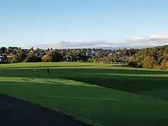 Overlee Park contains four football pitches,[5] a large playground and a pavilion. There is also a woodland area at the north of the park.[6] In the early 21st century the pavilion had fallen into disrepair, and became abandoned and was occupied by bats. However, in 2018 East Renfrewshire Council confirmed plans to build a small nursery in the park, as well as a replacement for the pavilion and a house for the bats. As of November 2019, the nursery's core structure is visible at the site.[7]