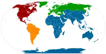 | Africa, Asia, Oceania and Antarctica | 1 | 1 |