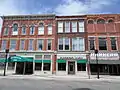 The Owosso Downtown Historic District contains primarily commercial buildings, but also contains a number of the city's important historic governmental, school, church, and social buildings. These include the Municipal Building/City Hall, the Owosso Armory, the former High School, two churches, a Masonic Temple, and others. The buildings in the district are typically two and three stories in height, but include two four-story buildings as well as a number of one-story structures. Architectural styles represented include primarily Italianate and Late Victorian commercial styles, but also some vernacular Greek Revival, Neoclassical, Commercial Brick, and Mid-century Modern buildings.[2]