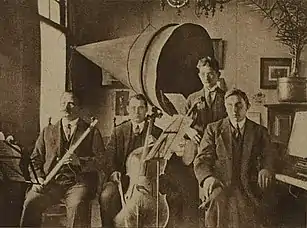 The station began a series of twice-weekly programmes, which soon drew attention, and a majority of its listeners, from across the English Channel in Great Britain. In May 1920 a British publication, The Wireless World, informed its readers that the 29 April and 2 May broadcasts many had heard had originated at PCGG, although many listeners, unaware of the Dutch station, had assumed they were a part of the ongoing test transmissions at the Marconi company's Chelmsford station.[10] In June the magazine further reported that PCGG's schedule was 6:40 to 10:40 p.m. on Thursdays, and 1:40 to 3:40 p.m. on Sundays. The transmitter was rated at about 500 watts, operating on a wavelength that ranged from 800 to 1,000 metres (375 to 300 kHz).[11] In August, the magazine reported that the summer schedule was reduced to one programme per week, on Thursdays from 6:40 to 9:40 p.m, now operating on 1,000 metres. Also, instead of gramophone recordings, the programmes would feature a small musical band that included a piano, violin and cello.[12]