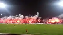Since its foundation, Lokomotiv has been one of the best supported football clubs in Bulgaria. In the early years of Bulgarian football the team's fans broke attendance records on numerous occasions,[3] even though many times the conditions were not at all hospitable (since 1928 the team did not have a home ground for more than 20 years).[4] By the 1940s the club was one of the largest in the country in terms officially registered members.[5] In 1968 supporters of the team established the amateur football club Friends of Lokomotiv Plovdiv as a means of organised support for the team, and in 1988 the official fan-club of the team – Club of the Supporters of Lokomotiv Plovdiv – was established as the first of its kind in Bulgaria. The political setting (the regime) of the time was unfavourable towards independently formed organisations.[6] In recent years, the team's fans have organised an amateur football tournament called Liga Lauta the proceedings from which go for the club's youth academy.[7] Organisers intend the extend the initiative to an annual tournament.