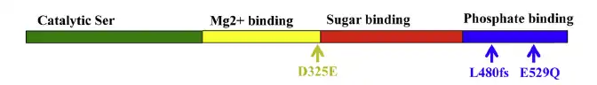 PGM3 is composed of four protein domains: active serine domain, metal-binding domain, sugar-binding domain, and phosphate-binding domain. Missense and deletion mutations have been discovered within multiple of these domains. All identified mutant PGM3 retain catalytic specificity however weaken enzymatic activity. Mutations in the sugar-binding domain leads to reduced PGM3 abundance and impairs PGM3 function and glycosylation to a higher extent than mutations in the catalytic or phosphate-binding domain, and results in a more severe clinical phenotype.[1]