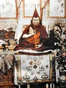 Pabongkhapa Déchen Nyingpo (Tibetan: ཕ་བོང་ཁ་པ་བདེ་ཆེན་སྙིང་པོ, Wylie: pha bong kha pa bde chen snying po ), (1878–1941) was a Gelug lama of the modern era of Tibetan Buddhism. He attained his Geshe degree at Sera Mey Monastic University, Lhasa, and became a highly influential teacher in Tibet, unusual for teaching a great number of lay people. Pabongkha was offered the regency of the present Dalai Lama but declined the request because "he strongly disliked political affairs."[1]