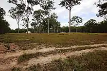 The registered former hospital site occupies 1.95 hectares (4.8 acres) in the northwest corner of Lot 5 M371033. Mature vegetation has been substantially cleared from the heavily disturbed site, with the exception of some scattered and perimeter eucalypts, and grass cover comprises thick, waist high weed species such as Blady or Kunai grass (Imperata cylindrical) and Snake Weed (Stachytarpheta spp.).[1]