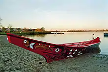 Large travelling and war canoes were often painted with designs associated with the names of the canoes or the crests of the owners.