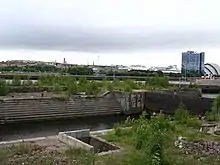 Pacific Quay is an area south of the River Clyde in Glasgow, Scotland. It is located at the former Plantation Quay and Princes' Dock Basin.[1] The Princes' Dock Basin was the largest on the River Clyde when it was opened by the Clyde Navigation Trust in 1900. It ceased to be used as a commercial dock by the Clyde Port Authority in the 1970s as the volume of Shipping using the Upper Clyde declined with the onset of containerization. The site was later used for the Glasgow Garden Festival in 1988. The former electric generating station and pumping house, "Four Winds" which was used to pump water between the rotundas and generate power for the electric cranes still stands and is now home to a consultant engineers and radio station. The name 'Pacific Quay' has no historical significance, as it was created simply as a marketing enterprise following the land being reclaimed for commercial use after the Garden Festival closure. It did not reflect the site as a departure point for ships bound for the Pacific Rim.