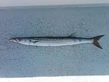 Sphyraena argentea (also known as Pacific barracuda, California barracuda and silver barracuda) is a predatory fish found in the northeast Pacific Ocean. They range from Cabo San Lucas, Baja California to Washington. However, they are not common north of Point Conception in Santa Barbara County, California. They can reach a length of about 1.2 metres (3.9 ft) and a weight of about 6.8 kilograms (15 lb). California barracuda are very popular sport fish in Southern California.