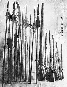 However, both the Red Spear Society and the Big Sword Society were made up largely of uneducated and poorly trained peasants, and had a traditionalist, quasi-religious character. Members of the brotherhoods placed their faith in rustic magic and belief in the righteous character's Heavenly reward. Big Sword members claimed that their spells made them immune to bullets. Red Spear bands were in many cases led by Buddhist monks as they went into battle, with their clothes and weapons decorated with magic inscriptions similar to that of the earlier Boxer Society.