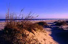The most common birds on the Gulf beach during the year are the willet, sanderling, black skimmer, great blue heron, double-crested cormorant, cattle egret, grey plover, laughing gull, brown pelican, reddish egret, and five species of terns, including the least tern, Caspian tern, black tern, Sandwich tern, and royal tern. The two periodically appearing birds nesting on the park's shores are the least tern and piping plover.[6]