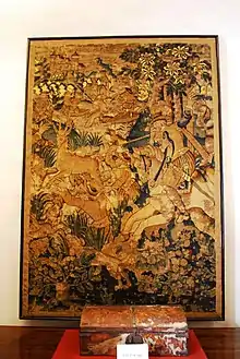 On the second floor, there is a mural painted by Diego Rivera in 1930, the History of Morelos, Conquest and Revolution.[7] The mural was restored and protective measures added in the 1990s, funded by private groups and the Centro Nacional de Conservación del Instituto Nacional de Bellas Artes.[8] In the former Salón del Congreso (Congress Hall), there are works done by Salvador Tarajona in 1938.[7]