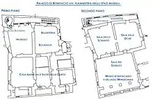 Other hypotheses have proposed that most of it was simply built by Pope Boniface VIII,[4] while others[5] have thought it possible to identify no less than fifteen different phases of construction, nine traceable to the 10th-11th and 15th centuries, others in the earlier 13th century effected the joining together of two separate residences of the end of the 12th century, thus creating a modest romanesque palazzetto with an adjacent tower. This would then have been modified later in the same century according to Gothic tastes and enlarged by powerful arches mounted on tall columns.