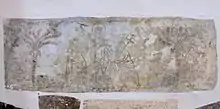 One of the most notable and exquisite pieces in this collection is a depiction, dated to about 390 A.D., of the iconographical topos, the Traditio legis, with Christ handing down the New Law to the Apostles Peter and Paul. The slab bearing this image was apparently not used to close a tomb, but was a decorative feature within the tomb where it was discovered.[23]