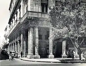 The Palacio de Aldama was built in 1840, and had two floors and a mezzanine; it is estimated that its cost was around one million pesos, a great sum for the time notes Dr. Juan de las Cuevas.[5] The Aldama Palace is actually two adjoining houses, "treated as an architectural unit of exceptional monumentality."[3] The larger house, that of Domingo Aldama and Arréchaga, located on the north side of the site, the other, that of his daughter Rosa who was married to the writer Domingo del Monte.[6][lower-alpha 2]Domingo del Monte was born in Maracaibo, Venezuela from a wealthy family, his parents were Leonardo del Monte y Medrano, an assistant and Lieutenant for the Governor in that city native of Santo Domingo, and Rosa Aponte y Sánchez, the daughter and heir of a known and influential planter.[8][9] Del Monte attended preschool while living in Venezuela, before his parents moved to Dominican Republic, and thereafter to Cuba in 1810. A few years later, when Del Monte was a twelve-year-old, his parents enrolled him into the Seminary of San Carlos, a catholic alma mater of Leonardo Gamboa in the novel [[Cecilia Valdés[[ by Cirilo Villaverde (1812–1894).[10] He completed studies at the University of Havana and right after graduation, around the 1820s, he had a notable influence as an associate for a prominent lawyer in Havana, who shortly after, financed a trip throughout Europe and the United States for the young Del Monte.[8][10] In April 1834, Del Monte married Rosa Aldama, the daughter of a wealthy planter named Miguel de Aldama.[9] He proposed marriage to her on the Philharmonic Society salon. Rosa's father was Domingo de Aldama y Arechaga, ranked as the twelfth richest in an 1836 survey of the most wealthy Cubans.[11]