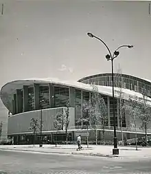 The project of the Sports Palace was a circular building 115 m in diameter, built of reinforced concrete and metal sheath. The work cost 56 million pesetas.