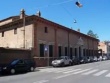 The palace now presents a low, long brick facade on a busy street, and is not highly distinctive except for its prominent portal.