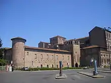 An initial design was made by Francesco Paciotto, from Urbino, and in 1558, the architect Giacomo Barozzi da Vignola, better known as Vignola, was brought in to revise the designs. Vignola had already been commissioned to design the Villa Farnese at Caprarola (Latium) for Cardinal Alessandro Farnese, the older brother of the Duke. Vignola had to take Piacotto's design into account but significantly revised the design which was presented to the patrons in 1561. The drawings are for a vast palace on a scale paralleled only by the Vatican Palace in Italy; the rectangular plan is circa 111 metres by 88 metres.[1] The building works were entrusted to Giovanni Bernardo Della Valle, Giovanni Lavezzari and Bernardo Panizzari (Caramosino). The actual construction, however, made up only less than a half of Vignola's original project and lacked many of the planned architectural features; missing elements include part of the exterior surrounding walls, the main façade modelled on the ancient triumphal arch and with a large tower, and a theater in the large inner courtyard. The expenditure of such a large palace plus the political machinations of the Piacentine nobility may have caused Ottavio not to complete the building and instead move his court from Piacenza to Parma. The construction of this partly built palace was completed in 1602, under Duke Ranuccio I.