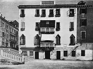 Palazzo Molina or Palace of Two Towers (Palazzo de Due Torri) or Palazzo Navager is a Gothic style palace located on the Riva degli Schiavoni #4145 in the sestiere of Castello, Venice, adjacent to the Ponte del Sepolcro, previously called the Bridge of Ca'Navager. It is best known for being the home, for about five years, of the poet Petrarch.