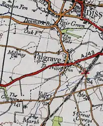 Palgrave is a village and civil parish in the Mid Suffolk district of Suffolk in eastern England.[1] It is located on the south bank of the River Waveney, opposite Diss and adjacent to the Great Eastern Main Line.