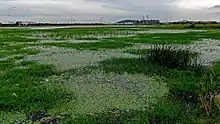 Pallikaranai wetland is a freshwater marsh in the city of Chennai, India. It is situated adjacent to the Bay of Bengal, about 20 kilometres (12 mi) south of the city centre, and has a geographical area of 80 square kilometres (31 sq mi). Pallikaranai marshland is the only surviving wetland ecosystem of the city and is among the few and last remaining natural wetlands of South India.[1] It is one of the 94 identified wetlands under National Wetland Conservation and Management Programme (NWCMP) operationalised by the Government of India in 1985–86 and one of the three in the state of Tamil Nadu, the other two being Point Calimere and Kazhuveli. It is also one of the prioritised wetlands of Tamil Nadu.[2] The topography of the swamp is such that it always retains some storage, thus forming an aquatic ecosystem. A project on 'Inland Wetlands of India' commissioned by the Ministry of Environment and Forests, Government of India had prioritised Pallikaranai marsh as one of the most significant wetlands of the country.[3] The marsh contains several rare or endangered and threatened species and acts as a forage and breeding ground for thousands of migratory birds from various places within and outside the country. The number of bird species sighted in the wetland is significantly higher than the number at Vedanthangal Bird Sanctuary.[4]