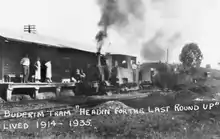 The final run of the Buderim tram occurred on 10 August 1935. The last duty of the Buderim tram was to assist in dismantling the railway by delivering the rails, which had been sold to the Moreton Sugar Mill Co., to Palmwoods. Only the rails and engines are recorded as being sold, but the sleepers, bridges and most buildings were also removed at the time or later.[1]