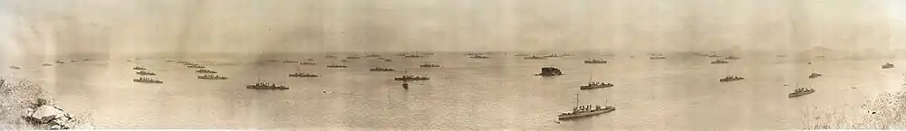 The Spanish–American War of 1898 added new life to the canal debate. During the war, American warships in the Atlantic seeking to reach battle zones in the Pacific had been forced to round Cape Horn. Influential naval pundits, such as Captain Alfred Thayer Mahan, urged the construction of a Central American canal. In 1902, with the French efforts moribund, US president Theodore Roosevelt backed the Panama route, and Congress passed legislation authorizing him to purchase the French assets[11] on the condition that an agreement was reached with Colombia.[12] In March 1902 Colombia set its terms for such a treaty: Colombia was to be sovereign over the canal, which would be policed by Colombians paid for by the United States. The host nation would receive a larger percentage of the tolls than provided for in earlier draft treaties. The draft terms were quickly rejected by American officials. Roosevelt was in a hurry to secure the treaty; the Colombians, to whom the French property would revert in 1904, were not. Negotiations dragged on into 1903, during which time there was unrest in Panama City and Colón; the United States sent in Marines to guard the trains. Nevertheless, in early 1903, the United States and Colombia signed a treaty which, despite Colombia's previous objections, gave the United States a 6 miles (9.7 km) wide zone in which it could deploy troops with Colombian consent. On August 12, 1903, the Colombian Senate voted down the treaty 24–0.[13]