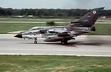 The first Tornado prototype made its first flight on 14 August 1974 from Ingolstadt Manching Airport, in what was then West Germany.[131] Deliveries of production Tornados began on 27 July 1979. The total number of Tornados delivered to the German Air Force numbered 247, including 35 ECR variants.[132] Originally Tornados equipped five fighter-bomber wings (Geschwader), with one tactical conversion unit and four front line wings, replacing the Lockheed F-104 Starfighter.[133] When one of the two Tornado wings of the German Navy was disbanded in 1994, its aircraft were used to re-equip a Luftwaffe's reconnaissance wing formerly equipped with RF-4E Phantoms.[134]