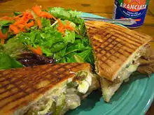 ![]() A typical panini with salami, mortadella, tomatoes and lettuce | |