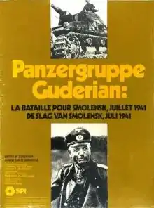 Panzergruppe Guderian was designed by James F. Dunnigan, and simulates the 1941 World War II Battle of Smolensk between the German Wehrmacht and the Soviet Red Army on an operational level. The game counters mostly represent German regiments and Soviet divisions. The hexagonal grid board map has a scale of 10.5 kilometers per hex; the game takes twelve turns, which represent two days.