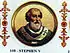 Tomb located in portico.[6] First pope buried on the porch of Old Saint Peter's Basilica; translated multiple times, combined with Leos II, III, and IV circa 855; removed in the seventeenth century and placed under his own altar, below Algardi's relief, Fuga d'Attila (pictured) in the Chapel of the Madonna of Partorienti.[1] |