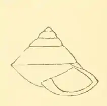 (Original description) The conical shell has an acute spire. It contains 5-6 whorls The last is sharply keeled, the upper whorls show a much greater convexity in proportion than the last two. The suture is shallow. The aperture is oblique, having a distinct callosity, presenting a somewhat heliciniform appearance, The peristome is expanded and reflexed. The columella is stout, with a protuberance at its base. The umbilicus is very narrow, partly concealed by reflexion of the lip. The shell is striated with somewhat coarse growth lines, otherwise it is destitute of sculpture. The colourof the shell is pale whitish yellow, deepening on earlier whorls.[1]