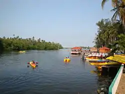 The most popular tourist area of the municipality is the Puerto Ceiba area due to its vegetation, docks as well as its inn with restaurant.[2][3] Seafood dishes typical of the area include oysters, and tourists can also tour the Mecoacán Lagoon by boat.[1] The Parador Turístico Puerto Ceiba is a look out area for the Mecoacán Lagoon. It offers boat tours on the Gonzalez River to the Gulf as well as the Mecoacán and Bellote Lagoons.[14][15] The Aqua Terra Paradise rents kayaks and paddle boats and offers rides on banana boats, motor boats and gives classes on recreational diving. There is also services for recreational fishing, snorkeling and night diving.[14]