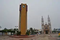 The center of the town is marked by a large plaza with the San Marcos Church on the north side. It and the La Asunción Church are the two most important as they represent its two patron saints of Mark the Evangelist and Our Lady of the Assumption.[2] Parque Central Guillermo Sevilla Fiqueroa features modern architecture with a tall clock tower. It also has areas with gardens and trees and a civic plaza set up to double as an open-air theater. There is also a cafeteria and a reflecting pool.[1]