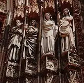 Sculptures of the wise and foolish virgins were a common motif in medieval ecclesial architecture in Europe, especially for the decoration of doorways, and carved figures representing them appear on many of the medieval churches and cathedrals of the Gothic style, including: