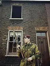 The first inquiry into Bloody Sunday largely cleared the Paras of blame. It described some of their shooting as "bordering on the reckless", but mostly accepted their claims that they shot at gunmen and bomb-throwers. It was accused of being a whitewash. A more detailed inquiry was carried out, chaired by Lord Saville (Bloody Sunday Inquiry) and lasting over a decade. It concluded that the Paras had fired on unarmed civilians, most of whom were fleeing and some of whom were shot while trying to help the wounded.[129] It found that none were posing a serious threat, that no bombs were thrown, and that soldiers "knowingly put forward false accounts" to justify their firing.[130][131] The soldiers denied shooting the named victims, but also denied shooting anyone by mistake.[132] The inquiry also found that soldiers had been fired at by members of the 'Official IRA',[133] but concluded that the Paras had fired the first shots,[134] and that none of the soldiers fired in response to attacks, or threatened attacks, by gunmen or bomb-throwers although two soldiers suffered slight injuries from acid or a similar corrosive substance.[132] It identified failures of leadership and command by the commanding officer, and individual failures by the soldiers involved; the report has been criticised by representatives of the soldiers involved as being one-sided.[135][136] Prime Minister David Cameron addressed the House of Commons in 2010 after the publication of the report stating that the actions the Paras' actions were "both unjustified and unjustifiable, it was wrong".[137]