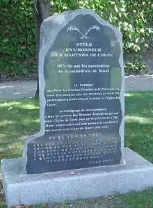 The park of the Paris Foreign Missions Society is the largest private garden in Paris. It houses various significant artifacts, such as a Chinese bell from Canton brought to France by the French Admiral Rigault de Genouilly, a stela to Korean Martyrs and the list of canonized members of the Paris Foreign Missions Society. The park can be visited every Saturday at 15:30.