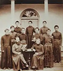 The chief events of this period were: the publication of the book Institutions apostoliques, which contains the germ of the principles of the rule, the foundation of the general seminary in Ayutthaya, Siam[27] (the Seminary of Saint Joseph,[28] at the origin of the College General now in Penang, Malaysia), the evangelization of Tonkin, Cochinchina, Cambodia, and Siam, where more than 40,000 Christians were baptized, the creation of an institute of Vietnamese nuns known as "Lovers of the Cross", the establishment of rules among catechists, and the ordination of thirty native priests. Between 1660 and 1700 about 100 missionaries were sent to Asia.[1]