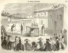 In the 19th century, local persecutions of missionary priests of the Paris Foreign Missions Society was often a pretext for French military intervention in Asia.[4] In Vietnam, such persecutions were used by the French government to justify the armed interventions of Jean-Baptiste Cécille and Rigault de Genouilly. In China, the murder of Father Auguste Chapdelaine became the casus belli for the French involvement in the Second Opium War in 1856. In Korea, persecutions were used to justify the 1866 French campaign against Korea.