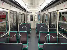 Until 1971, the rolling stock on line 3bis was the same as on line 3.[6] Between 1972 and July 1981, the Sprague-Thomson variant was used, but this was then replaced with MF 67trains of only three cars (because of the low passenger volumes), which still run on the line today. These trains are identical to those on line 9, except that the 3bis trains do not have strapontins (fold-down seats).