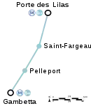 The line begins at the Gambetta terminus with its two tracks joined by a central platform. The line follows the avenue Gambetta in a north-easterly direction, following a nearly straight route to pass through the two deep stations of Pelleport and Saint-Fargeau, before reaching its terminus at Porte des Lilas. The line ends with a turnaround loop, with one of the two tracks allowing for trains to be transferred to the voie navette.