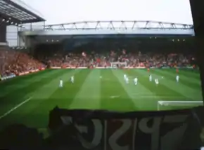 Back then, the majority of people attending Parc des Princes were casual spectators or away supporters, and the stadium was only full when Paris faced more prestigious sides like Saint-Étienne, Nantes, Olympique de Marseille or Stade de Reims.[5][27][30] In response, the club put in place an attractive subscription plan called Young PSG Supporters in 1976, placing its subscribers in the K section, the first fan-dedicated space at Parc des Princes.[4][30] They named this section the Kop K in reference to the famous Spion Kop stand in Anfield that groups the supporters of Liverpool.[31] Kop K went from 500 subscribers against Reims in September 1976 to 3,000 members in early 1977.[5][27][30]
